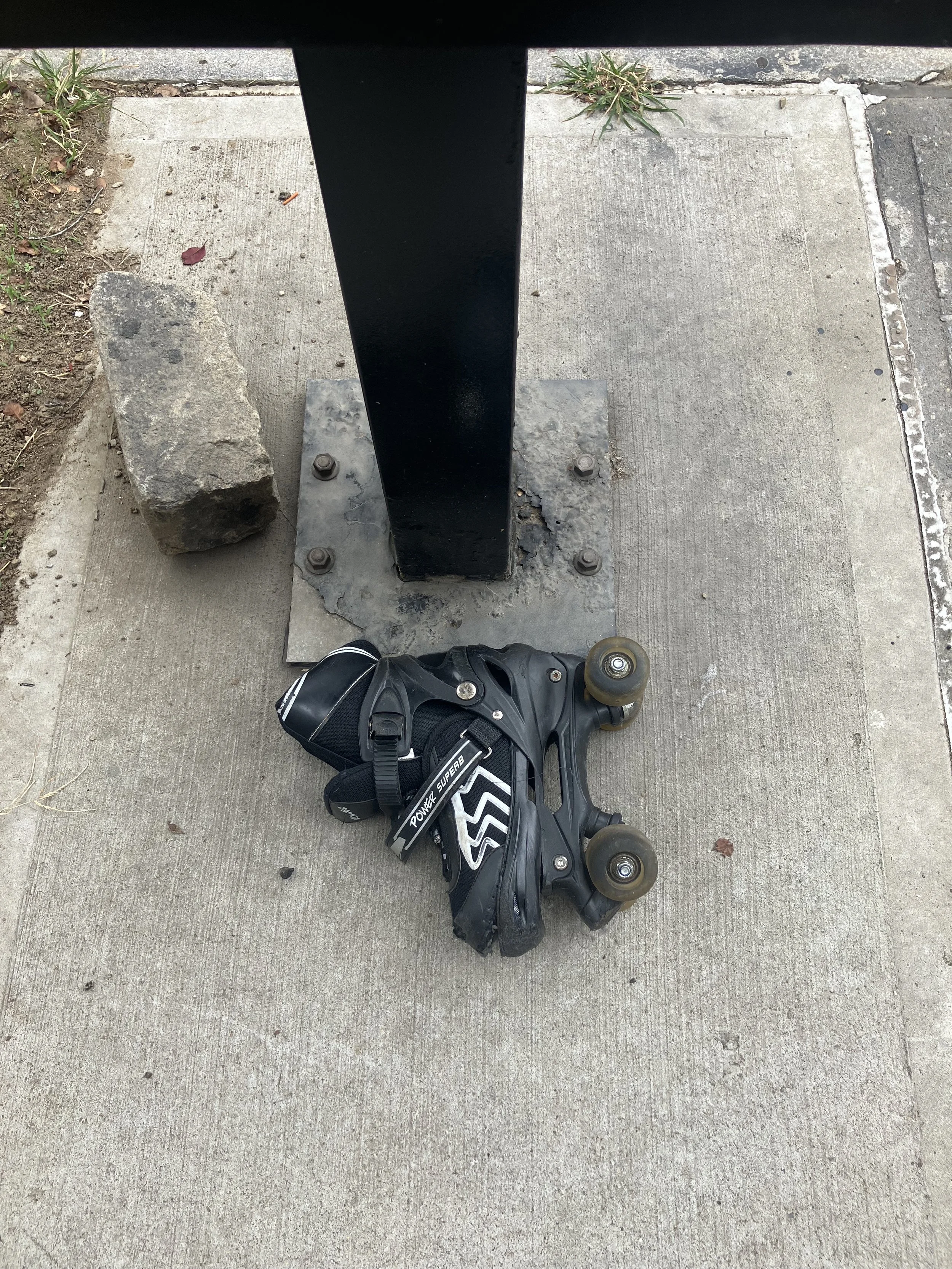 the left behinds are photographs I take — usually with my phone — while out and about. I think of them as urban archaeology, the spontaneous study of human activity and culture through materials unintentionally lost. Some of the left behinds are head scratching (a wheelchair), others make me feel bad for the person who lost them (a prescribed medication) or are echoes of what once was (a hotel facade). All items are shot in situ — I photograph the left behinds just as I happen upon them.